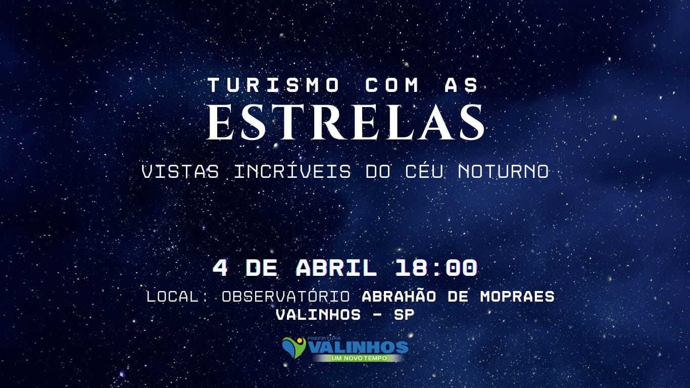 No próximo dia 4 de abril, às 18h, o Observatório Abrahão de Moraes, em Valinhos, será palco do evento “Turismo com as Estrelas”. A iniciativa, realizada pela Secretaria de Cultura e Turismo da cidade, promete uma noite de imersão no universo da astronomia, com vistas incríveis do céu noturno e atividades educativas e culturais.