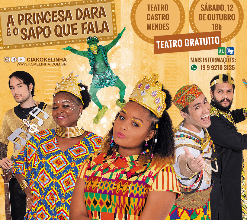 A Companhia de Teatro Kokelinha, formada por artistas e arte-educadores de Campinas, apresentará em duas datas o espetáculo teatral “A Princesa Dara e o Sapo Que Fala”. No dia 28 de setembro, às 16h, na Comunidade Menino Chorão e, no Dia das Crianças, dia 12 de outubro, às 18h, no Teatro Municipal Castro Mendes. As apresentações contarão com interpretação em Libras e entrada gratuita. O projeto foi contemplado pela Lei Paulo Gustavo da Secretaria de Cultura e Turismo de Campinas.