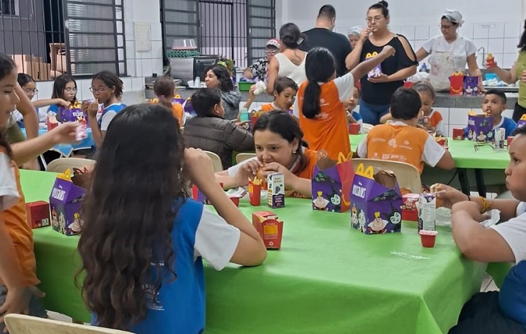 O momento foi marcado por sorrisos, gratidão e interação entre crianças e organizadores.