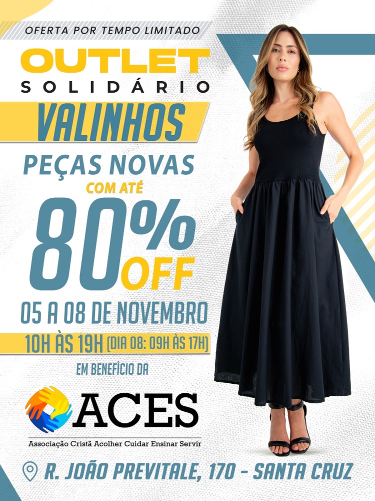 A ACES (Associação Cristã Acolher, Ensinar e Servir) realiza mais uma edição do seu tradicional Outlet Solidário, que chega à 9ª edição em Valinhos com grandes oportunidades de compras e um propósito solidário.