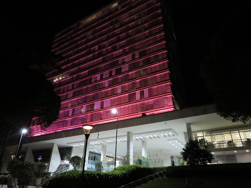 Paço Municipal iluminado em violeta reforça mensagem da Campanha – Crédito: Divulgação/Assistência Social
