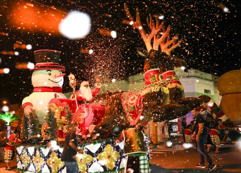 A programação deste ano inclui duas Paradas de Natal e uma apresentação teatral especial. No dia 11 de dezembro, o cortejo passa pelo Centro, no dia 12, segue para o bairro Capela. Já em 17 de dezembro, a Praça Aurora Sudário recebe um espetáculo teatral de temática natalina, com cenografia e narrativa voltadas para toda a família. Também estão previstas ações itinerantes da Família Noel em diferentes pontos da cidade, entre eles Centro, Barra Funda e Parque Municipal.