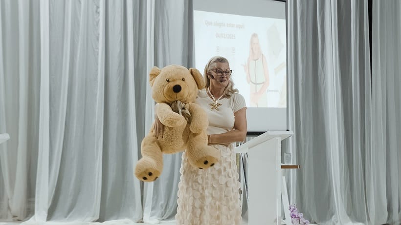 O evento de acolhida aos profissionais da educação contou ainda com uma palestra de Ana Reisky, educadora, escritora, contadora de histórias e especialista em Logoterapia. A partir da pergunta provocadora “como eu estou vivendo?”, a palestrante apresentou aos presentes a necessidade de uma postura aberta diante das circunstâncias da vida, colocando em cada um a possibilidade de tomar decisões acolhedoras.