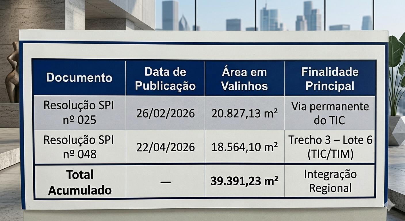 A implantação do Trem Intercidades (TIC) e do Trem Intermetropolitano (TIM) avançou decisivamente em solo valinhense neste primeiro quadrimestre de 2026. Através de dois decretos estaduais, Valinhos consolidou-se como o município com a maior área destinada à modernização da malha ferroviária na região. Somadas, as intervenções já superam os 39 mil metros quadrados de áreas declaradas de utilidade pública.