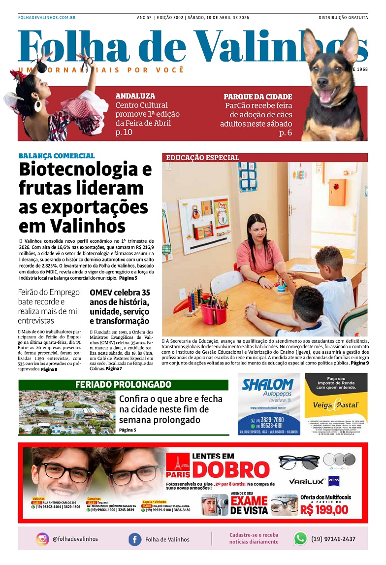 Edições FV Digital_18 de abril 2026 20 de abril de 2026 FV Digital_18 de abril 2026 COMPARTILHE NAS REDES