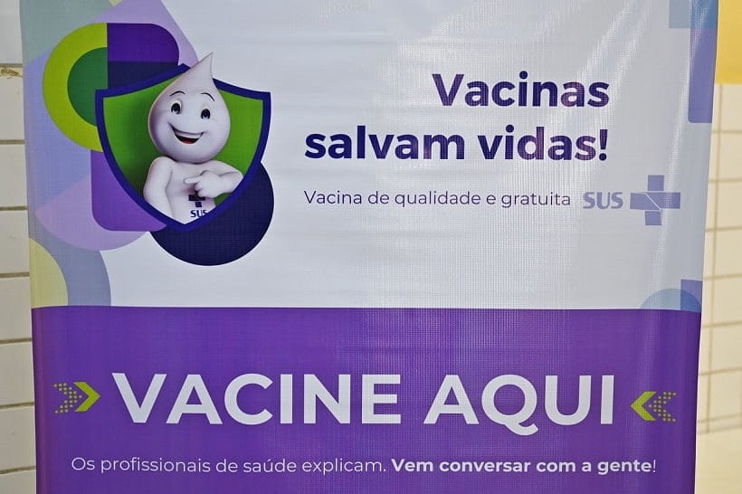 Imagem mostra cartaz que destaca a importância das vacinas para promoção da saúde e salvar vidas