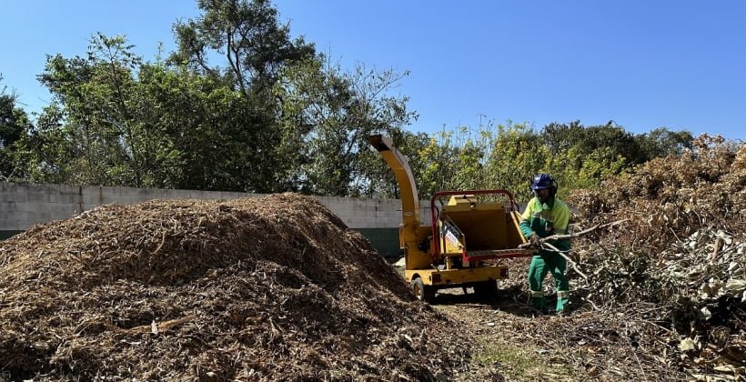 No local já são triturados alguns galhos provenientes de podas executadas pela Secretaria de Serviços Urbanos. Posteriormente os insumos obtidos serão doados aos produtores, por meio da Associação dos Agricultores de Valinhos.