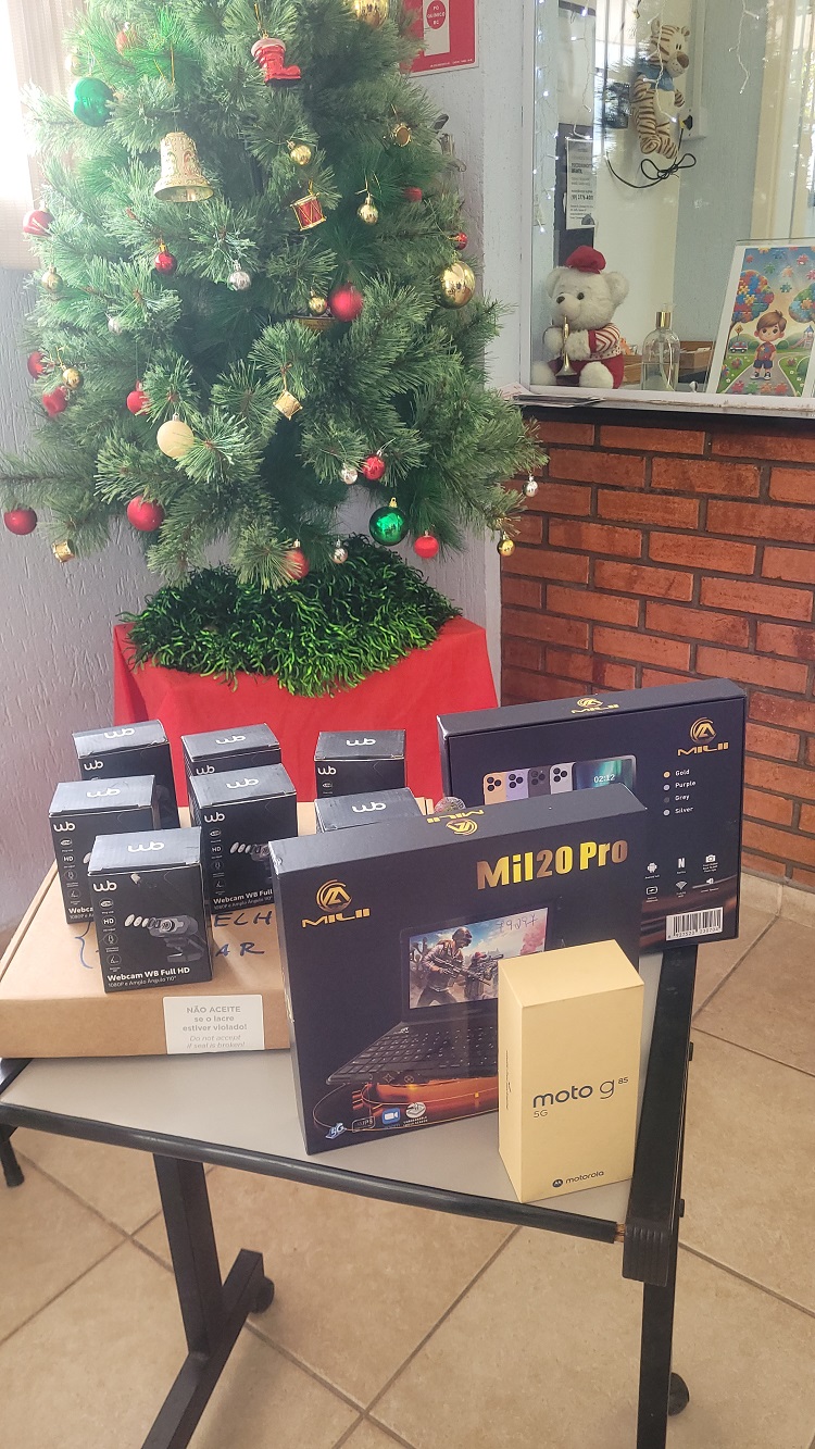 Foram entregues dois tablets, sete webcams, um notebook e dois celulares.