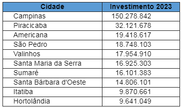 Além de Campinas, cidades como Itatiba, Hortolândia, Santa Bárbara d’Oeste, Santa Maria da Serra e São Pedro receberam investimentos significativos da concessionária. Confira os números: