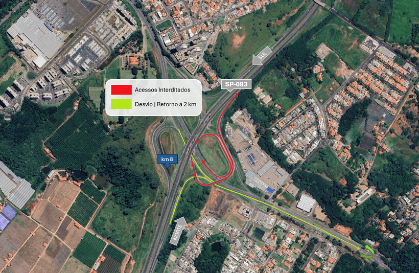 Para reduzir impactos no trânsito, a concessionária sinalizou um retorno na altura do km 2 + 600. Motoristas que seguem em direção à Rodovia Dom Pedro I devem retornar para Valinhos.