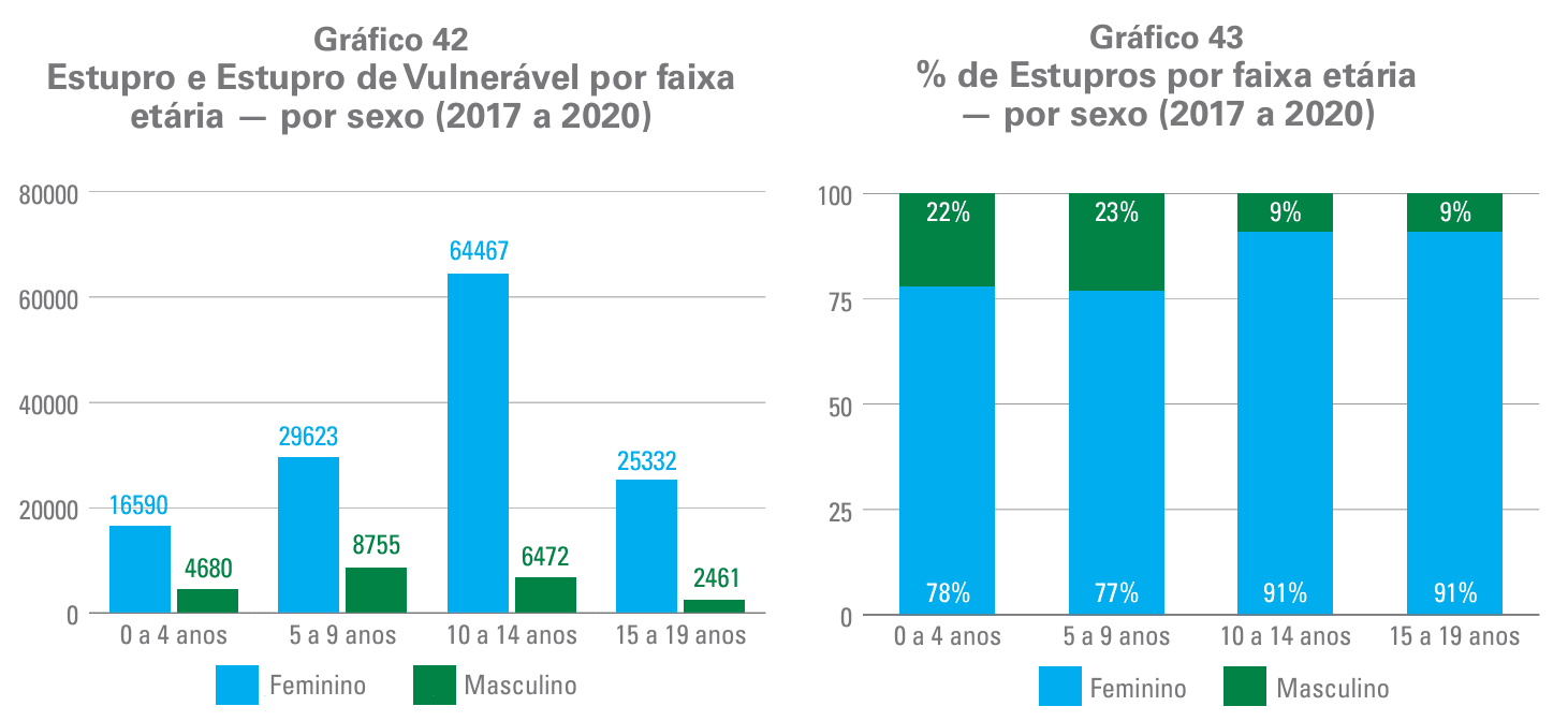 No caso de Valinhos, um dado do retório chama a atenção e corrobora com o que foi noticiado pela Folha de Valinhos no dia 27 de julho. Segundo o relatório, de 2017 a 2020, 81% das vítimas de estupro e estupro de vulnerável tinham até 14 anos, com a maioria dos casos envolvendo meninas. No Brasil, meninas de 10 a 14 anos representam 47% das vítimas de estupro, enquanto 59% dos meninos vítimas desse crime têm até 9 anos.