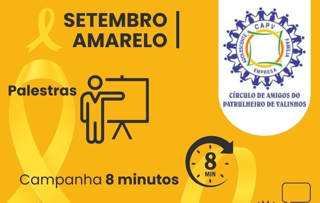 O Círculo de Amigos do Patrulheiro Valinhos, iniciou a campanha Setembro Amarelo, mês que chama atenção para o suicídio, trazendo para os jovens o tema: “Saúde mental tão importante quanto as batidas do seu coração.