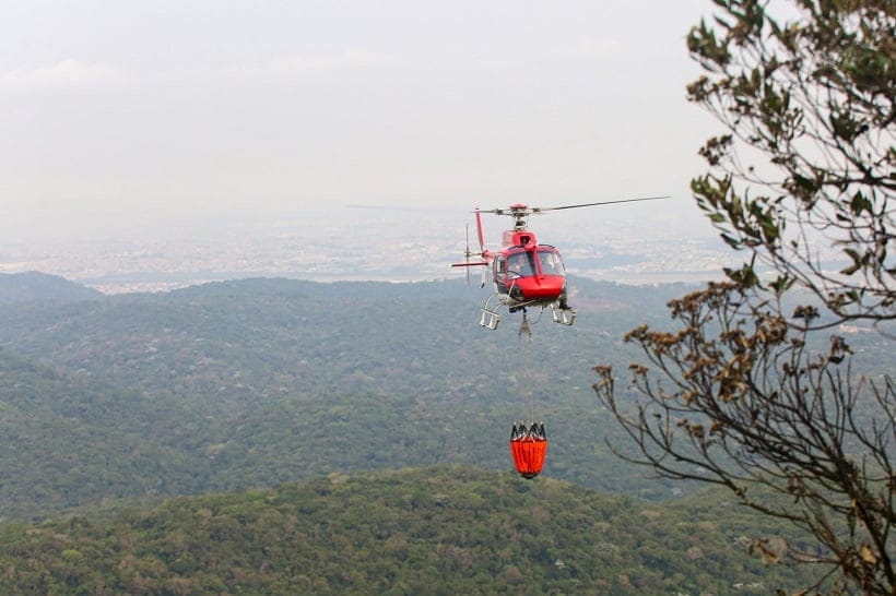 Helicóptero da PM também auxilia no combate ao fogo. Foto: Divulgação/Governo de São Paulo