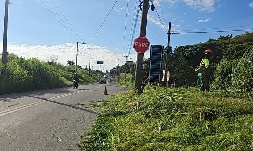 Nesta segunda-feira os serviços foram realizados em diversas frentes, com roçadas na Alameda Itajubá (Joapiranga); na Rodovia Comendador Guilherme Mamprim (região do Portal); praça e ruas do bairro São Cristóvão; e na Avenida Rigesa (Vila Papelão), onde foi utilizado o trator para a capinação mecânica.