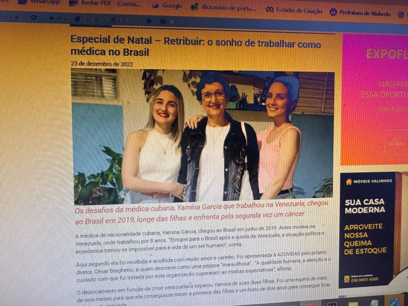 A cidade de Valinhos se despede, com profundo pesar, da médica cubana Yamina Garcia Valdespin, que faleceu nesta terça-feira, dia 18, aos 54 anos de idade, após uma longa e corajosa batalha contra um câncer. Ela deixa duas filhas, Susan e Sayli, e um exemplo inesquecível de resiliência e dedicação humanitária.