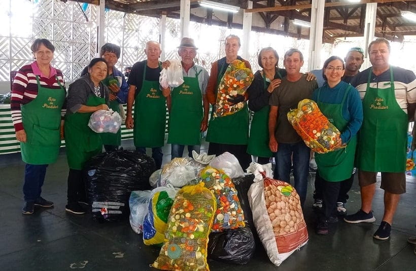 A doação das tampinhas é uma ação social dos agricultores, que recebem dos clientes e quando conseguem uma quantidade, o presidente do Recanto dos Velhinhos Ademir João Rossi vai pessoalmente retirar.